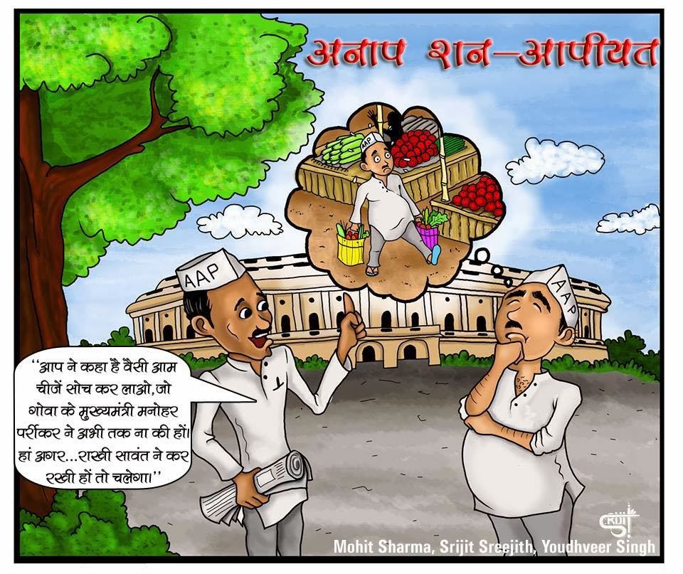 “आप ने कहा है वैसी आम चीज़ें सोच कर लाओ, जो गोवा के मुख्यमंत्री मनोहर पर्रीकर ने अभी तक ना कि हों। हाँ अगर… राखी सावंत ने कर रखी हों तो चलेगा।”
